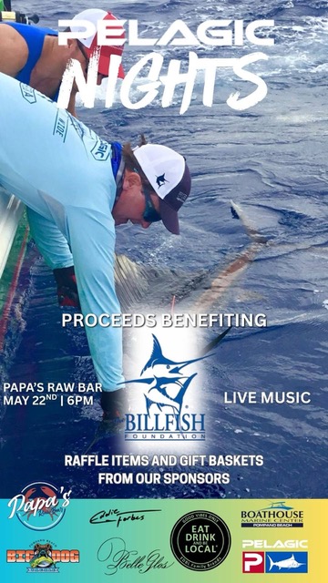 Join the Billfish Foundation on May 22nd for their fundraising event at Papa’s Raw Bar in Pompano Beach – Pelagic Nights.